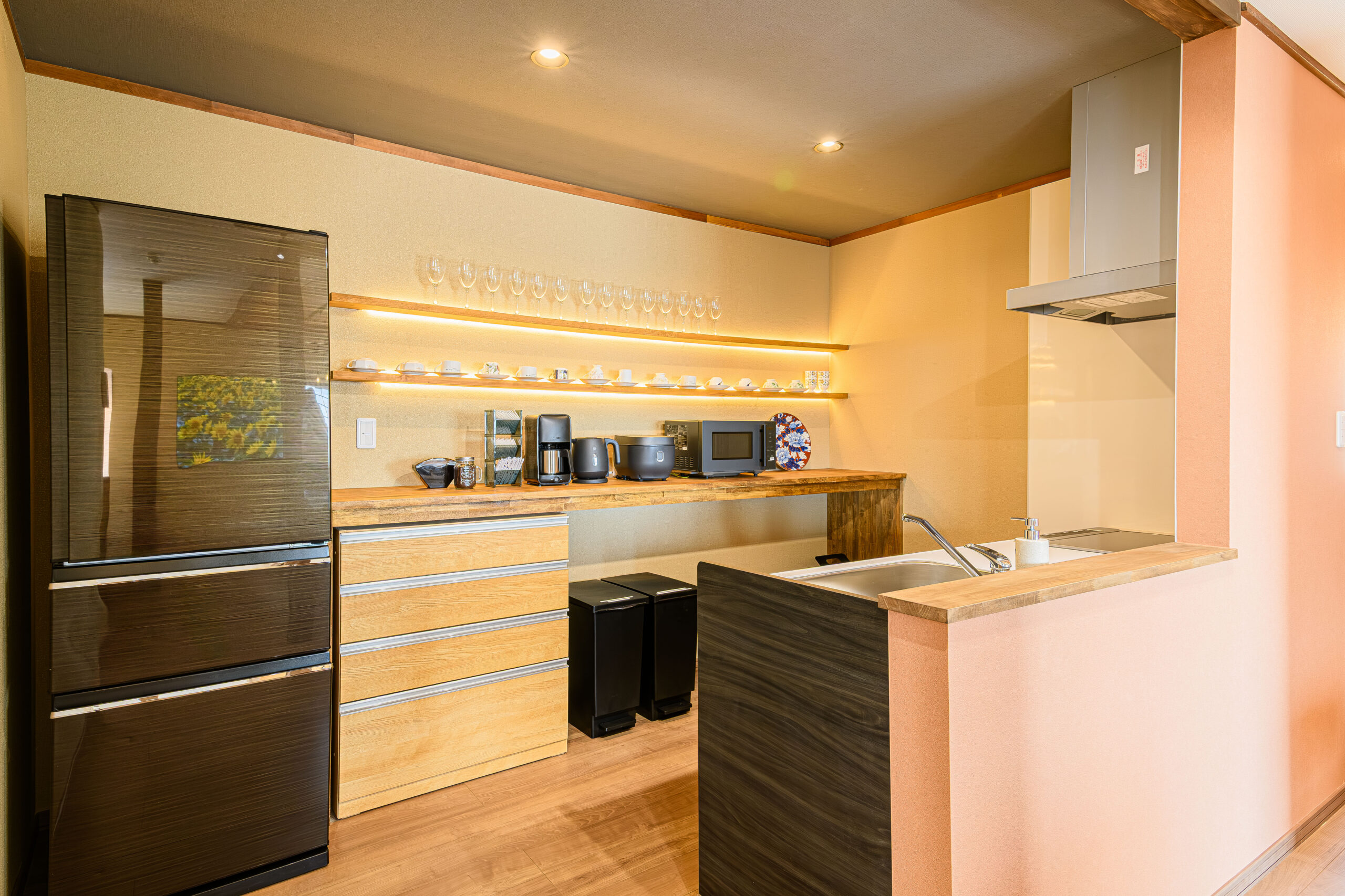 全てのお部屋にキッチン・シャワールーム・ウォシュレット付きトイレ・冷蔵庫や調理器具・食器などを完備しております。近くの市場で仕入れた旬の食材を調理しながら大切な家族、ご友人とお過ごしいただけます。